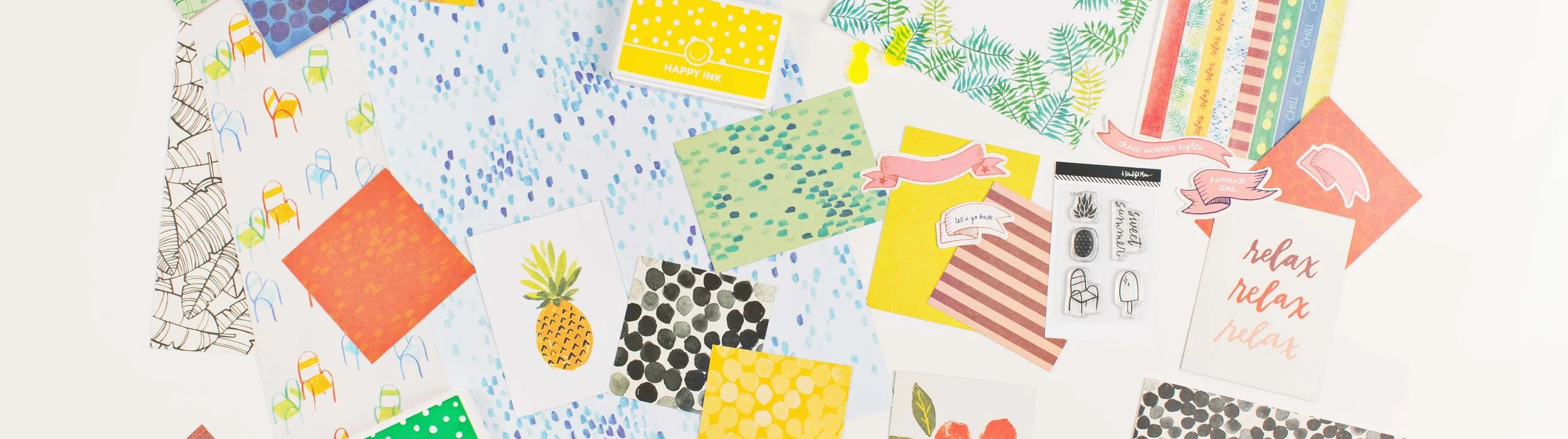 The second subscription service, Messy Box, was launched in March 2015. Each box is filled with scrapbook essentials, including paper and cards, stickers, embellishments, and other special items. Both services are offered on a month to month commitment, a six month commitment, and a year commitment. Both programs for this month highlight the arrival of summer by featuring tons of bright colors, pineapple and palm tree prints, and popsicle stamps.
